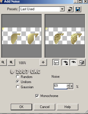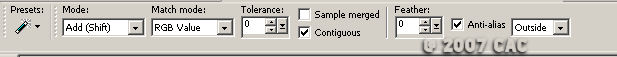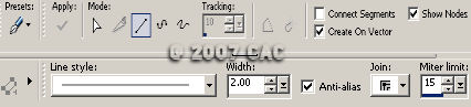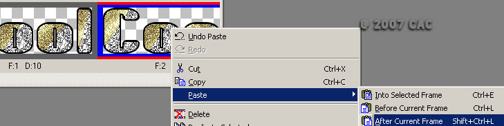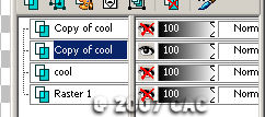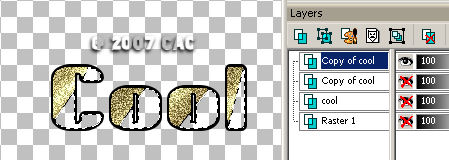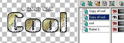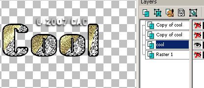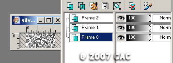 4. On your Materials pallet close off the foreground and make the background black. #000000.  5. Type your word on your canvas. After you type it right click on vector and convert to a raster. Right click again and rename it name.  6. Click on your Pen tool to activate it: Your pen settings should be the same as mine.  7. Go to your materials pallet and flip the foreground and background. Like so:  8. Start on the lower corner of your first letter, click on it then more towards the top of the letter like so:  9. After I had the first line drew I drew a second one in my letter C so that it gave an appearance that the line continued like so:  10. Continue through the rest of your letters until you done. Don't forget is there is a break in the letter to stop your line at the break and continue it again were you left off just like I did with the letter C. Once you have finished with all your letters right click on the word vector and convert it to a raster. Rename it once again the word you are using.  11. Close off Raster 1 and merge the rest visible. 12. Now click on your magic wand and use the same settings that I have.  13. Click in one half of each letter. Hold down your shift key as your move through the letters so the ones you want are all highlighted at the same time. See Example:  14. Now go to selections/modify/expand by 1. 15. Go to your materials pallet and with your foreground selected go to pattern and find your gold pattern that comes with PSP.  16. Flood Fill your selected area with the gold. Select none.  17. While your top portion of your word still has the marching ants go to adjust/add/noise and add noise with these settings.  18. Now take your magic wand and highlight the second part of each letter. When you have each letter with marching ants repeat step 14. BABY BEES - REPEAT SAME STEP AS THE GOLD THEN GO SHORT CUT STEP 11 ONLY AND SAVE IT. HONEY BEE'S AND ABOVE FOLLOW THE REST OF THE LESSON.  THIS IS MY BABY BEE, BUMBLE BEE RESULT HONEY BEES AND ABOVE CONTINUE FROM HERE. 19. Open up the silver in psp you will notice that it comes with 3 layers. Click on the first layer, go to edit and copy then click on a blank spot on your psp right click and paste as a new image. Do this separately for each silver layer. You should now have 3 different silver images. Close the original silver you will not need it anymore. Note: Your really may not see it but each one of the silver layers is different. That is why you need to have all three different layers opened individually.   20. With your second half of your letters highlighted click on the name in your layers pallet and duplicate it 2'xs. Doing this will keep duplicated layer highlighted as well. 21. Now double click on your foreground and go to Pattern and find the very first silver glitter pattern. Watch the patterns so you know which silver your working with. For each word layer we will be using a different silver. My first silver is image 21, the second one is Image 22 and the 3rd one is Image 23. Note: when working with glitter you have to duplicate the image your working with to match the number of layers that are within the glitter. The silver only had 3 layers so we had the original name and 2 duplicates to give us 3 layers that match the silver.  22. Make sure your original word layer is activated and close off the 2 duplicate layers. Flood fill the original word layer with the first glitter image.  22. Now close of your original word and activate the copy above it like so:  23. Now go back to your material pallet and chose the second silver pattern. Mine is Image 22 see step 21 example. 24. Flood fill this layer with your second silver pattern 25. Now close off that copy and open up the last copy of your word. Close off the one you just filled. It will look like this:  26. Now go back to your material pallet and chose the Third silver pattern. Mine is Image 23 see step 21 example. And flood fill the last copy with that silver. 27. Select none. SHORT CUT TIME 1. Open up your animation. 2. Close off all your layers including psp except for the original word layer.  3. Go to edit copy. 4. Go to animation and any blank space right click and paste as a "new animated image". 5. Go back to psp and close off the original name and active the copy of the one above it.  6. Go to edit copy. 7. Go back to animation click on the first image and right click, paste "After Current Frame".  8. Go back to psp and close off the copy of the word above the original and activate the last word layer.  8. Go to edit copy. 9. Go back to animation click on the second frame image and right click, paste "After Current Frame". Note: Take not that F2 is highlighted before I paste the last image in.  10. In animation click on view/animation. I did not alter my frame speeds I liked it the way it was. 11. Save it from animation as a gif resize it from there if you need to as well. NOTE IF YOU OPEN UP YOUR OTHER GLITTERS ATTACHED AND THEY DO NOT OPEN AS AN ANIMATED IMAGE THEN OPEN THEM IN ANIMATION FIRST. FROM ANIMATION GO TO EDIT SELECT ALL AND THEN EDIT COPY. THEN TAKE THEM TO PSP RIGHT CLICK ON A BLANK SPOT AND PASTE ANIMATION AS MULTIPLE IMAGES. THIS WILL OPEN THEM UP IN ALL THE FRAMES THAT YOU WILL NEED LATER. You can do this style with many types of glitter. I showed you how to split the word up but you don't have to the sky is the limit and as I always say with psp you can paint the sky. I added a couple of other examples I added an inner bevel to a few of these.