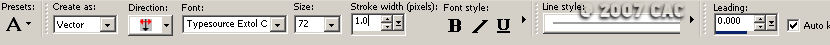 1. Open a new image 500 x 500 transparent. 2. Click on your text tool.  3. Use these settings for you very first word. Later when you get familiar with the style you can try out different fonts for different effects. Type source Extol O BRK is the font offered with the zip. Please use the font provided for this lesson.