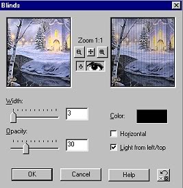 Go to effects, plugins, DSBFlux, bright noise, change the setting to 36. Keep selected. Go to effects, texture effects, blinds. Use the following settings.