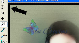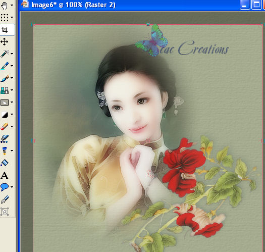 7. Your tube not should be center of your background. Let's crop it down a little so its now so large and fits better within the frame. You do this like so: On your left hand side of your PSP you will see the