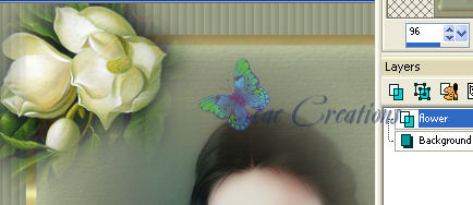 22. Open up the flower tube and follow the same procedure as copying and pasting as in step 5 and 6. Move your flower tube my using the raster deform tool to the upper part of your image. Towards the left hand side of the frame.