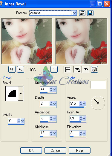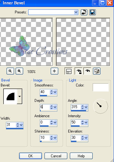 35. Go to effects/3d effects/inner bevel and use my settings below to add a bevel.