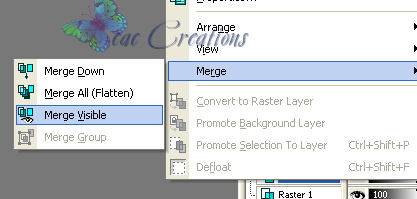 8. Go to your layers pallet on the right side and click on Raster 1 and merge Visible.