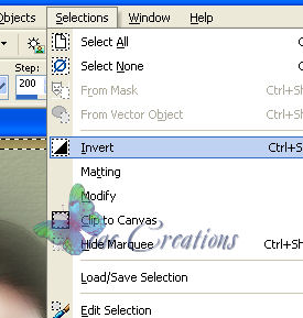 32. Once it looks like the marching ants are going around the outside of the gold frame go to selections and click on invert. Same as step 14.