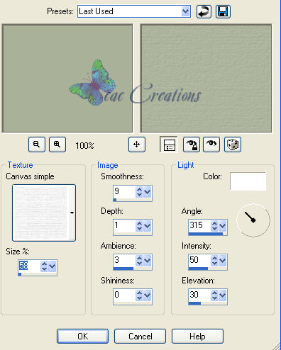 4. Follow these settings and give your background some texture. Don't forget to scroll down on the Texture portion and look for Canvas simple.
